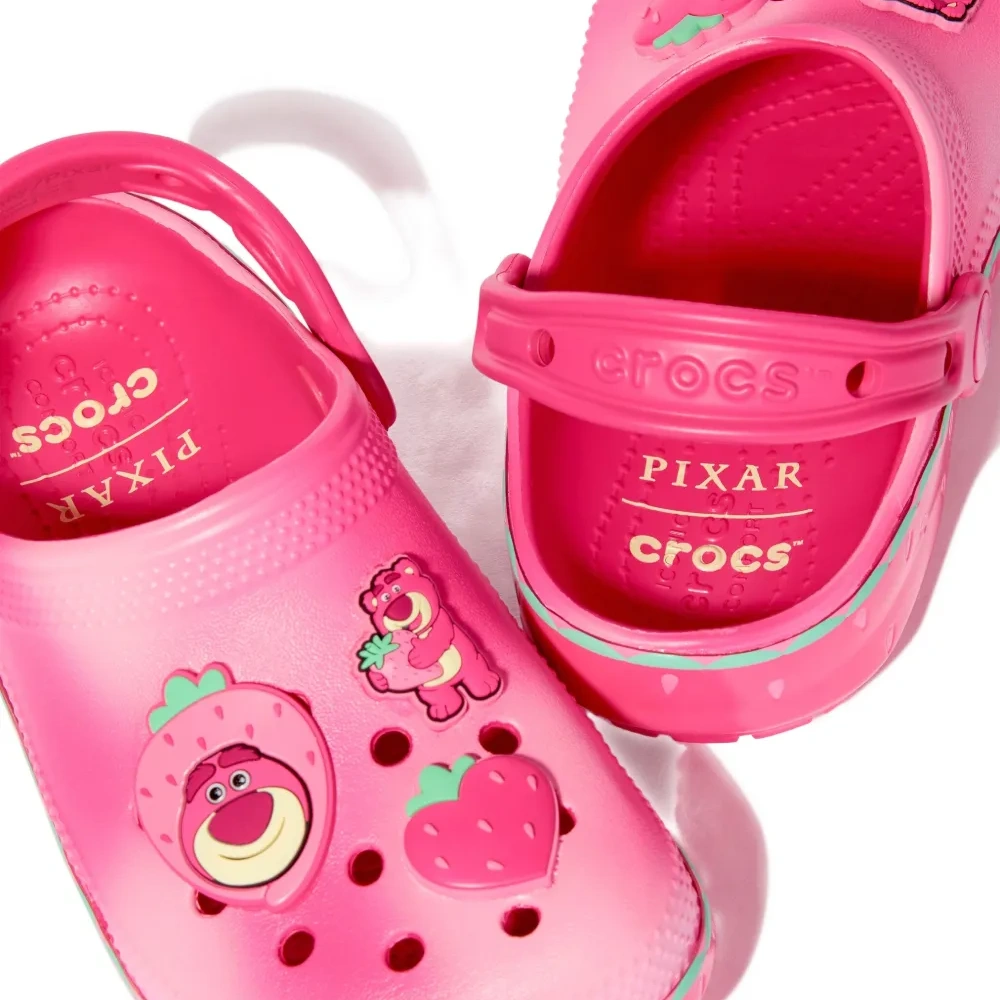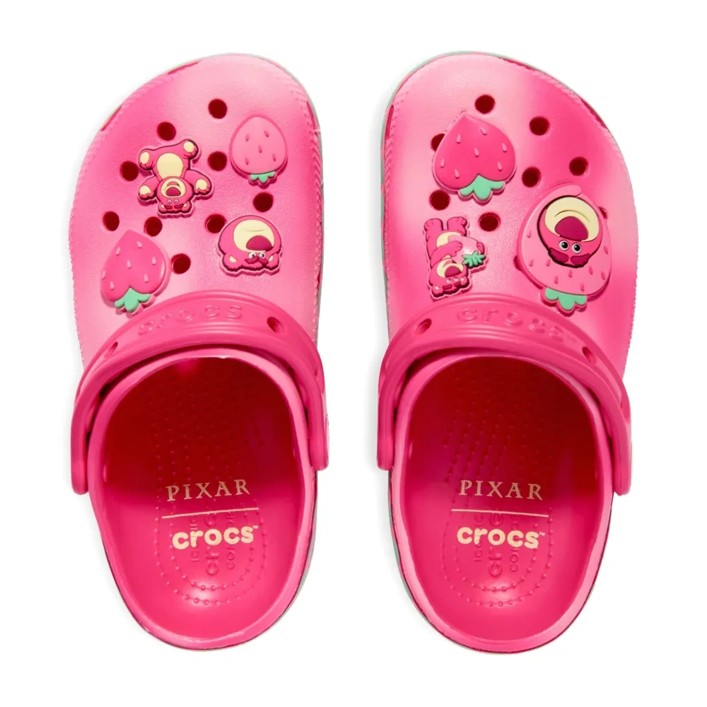 розовые туфли с круглым носком, деталью в виде клубники и ремешком на пятке
