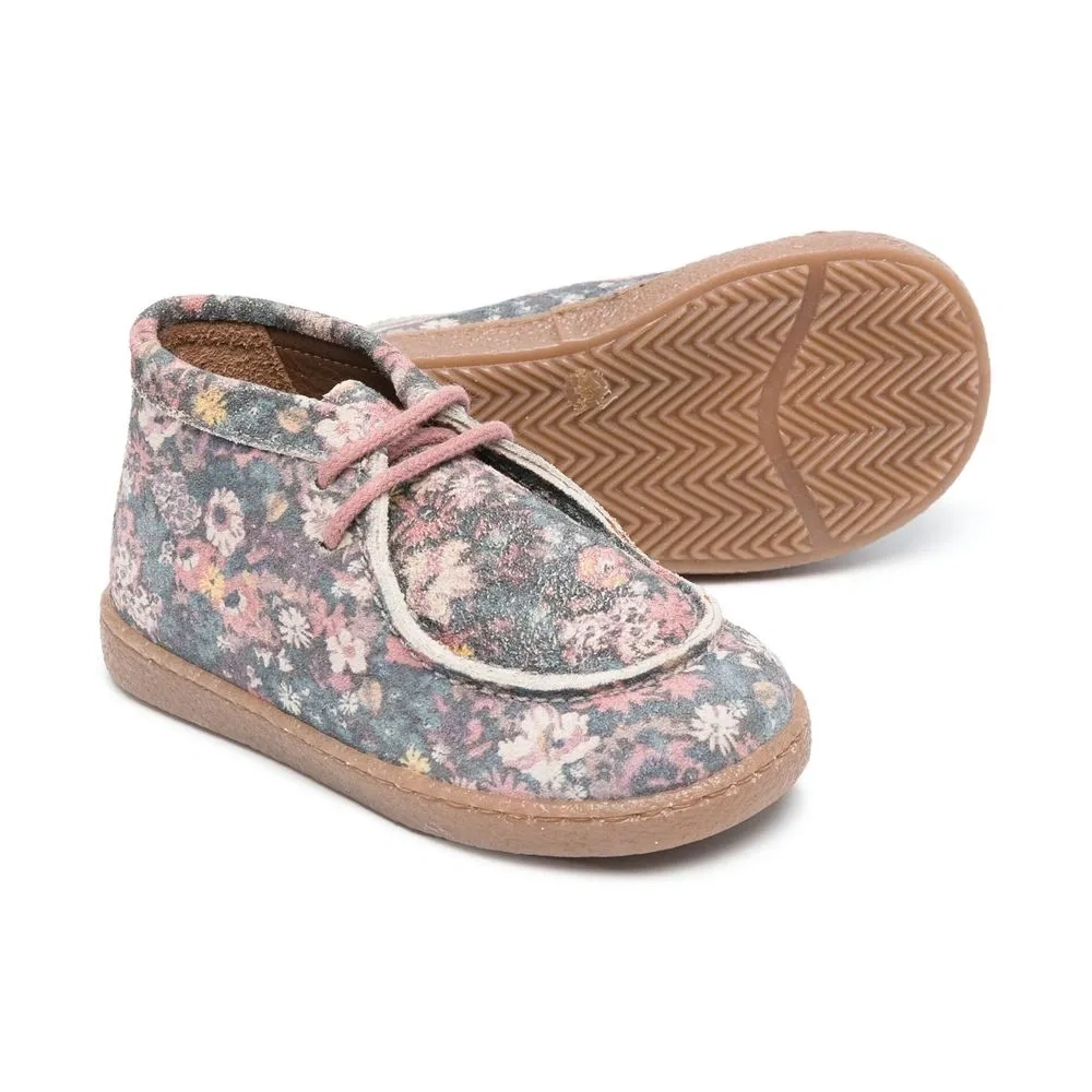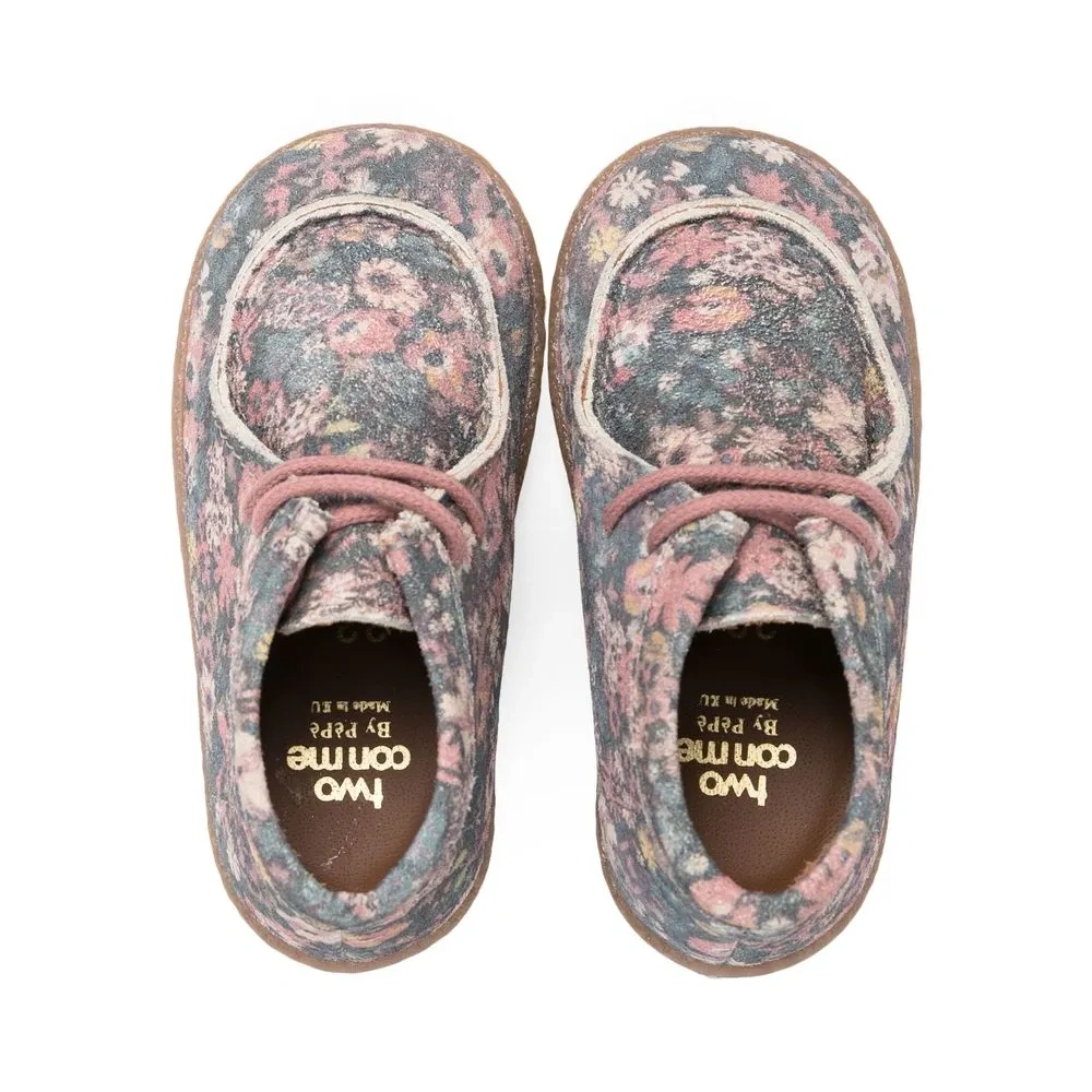 Розовый, разноцветный, замша из телячьей кожи, телячья кожа, сплошной цветочный принт, высота по щиколотку, закругленный носок, шнуровка спереди, кожаная стелька с логотипом и плоская резиновая подошва.