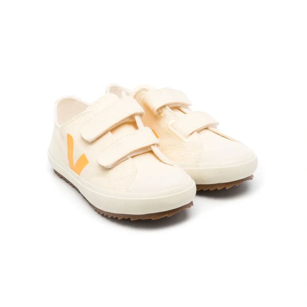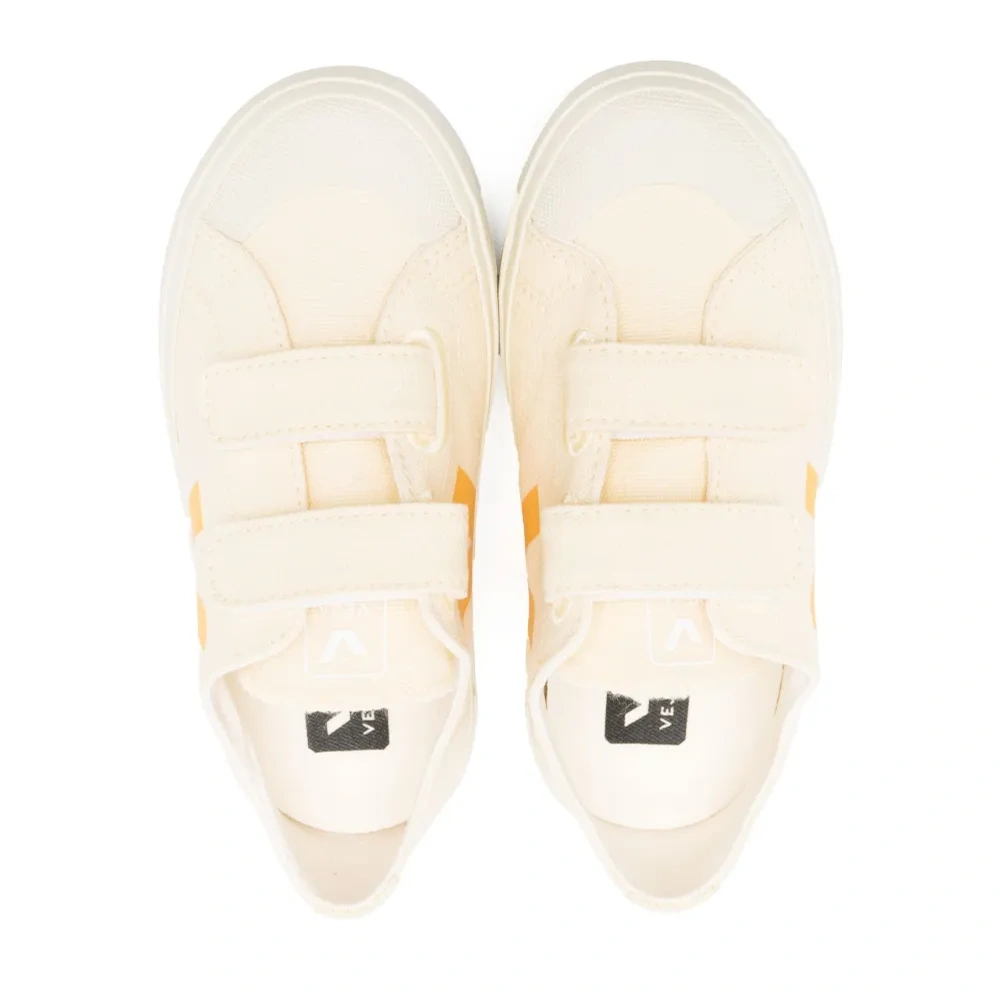Логотип сбоку, строчка в тон, закругленный носок, застежка на липучке спереди, логотип на стельке и резиновая подошва.
