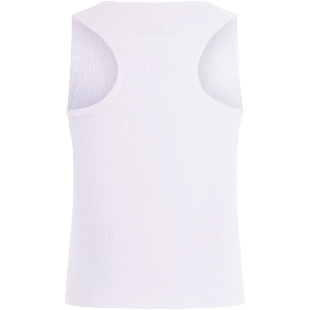 белый трикотажный топ в рубчик без рукавов с вышитыми деталями и круглым вырезом