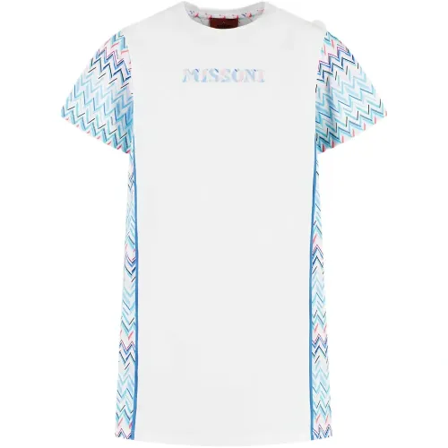 белая футболка с зигзагообразным узором, короткими рукавами и круглым вырезом