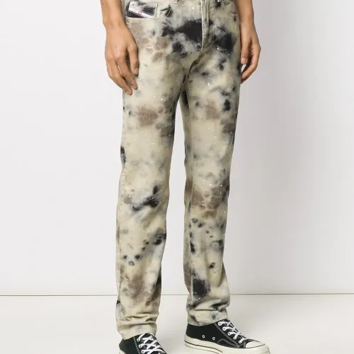 Джинсы кроя слим от Diesel (Дизель). Эффект потертости, пояс с петлями для ремня, классическая пятикарманная модель, застежка на пуговицах спереди и стандартная длина.