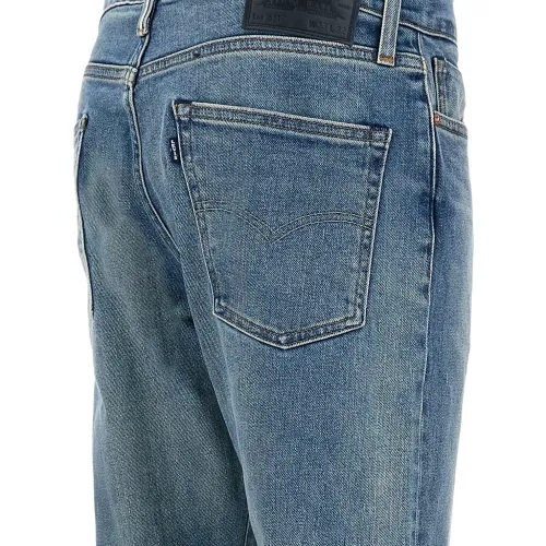 синие, пять карманов, застежка-молния с пуговицей, нашивка с логотипом