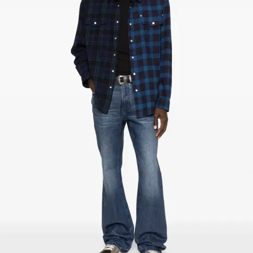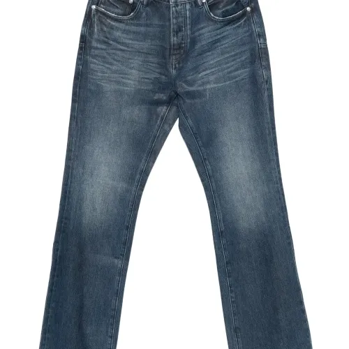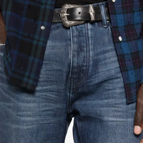 темно-синий эффект потертости застежка на пуговицы дизайн с пятью карманами шлевки для ремня бахромчатый низ