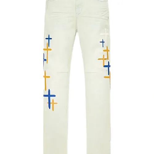 белый крестообразный узор выцветшая стирка вышитая отделка