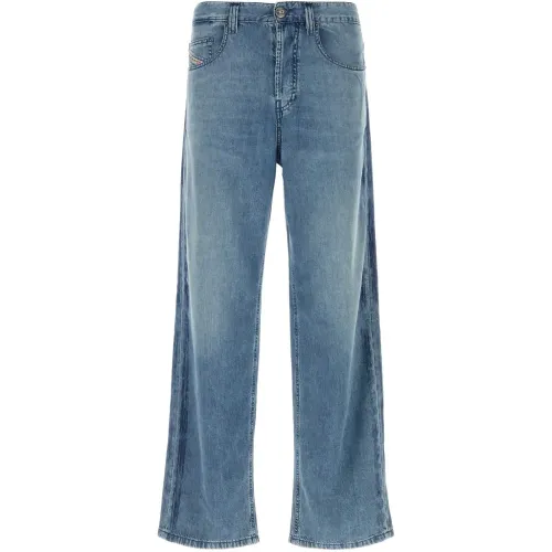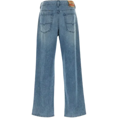 синие брюки с полосатой отделкой, шлевками для ремня, пятью карманами и нашивкой с логотипом сзади