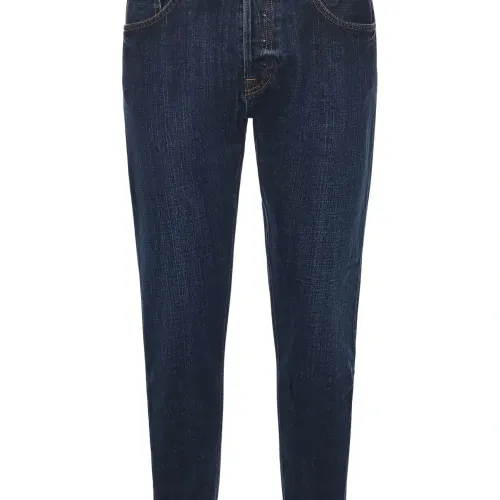 темно-синий застежка на пуговицы спереди классические пять карманов шлевки для ремня отвороты