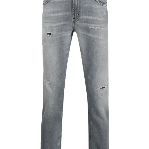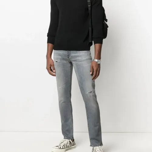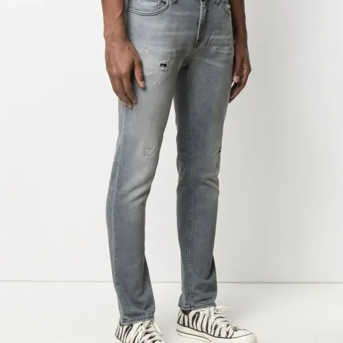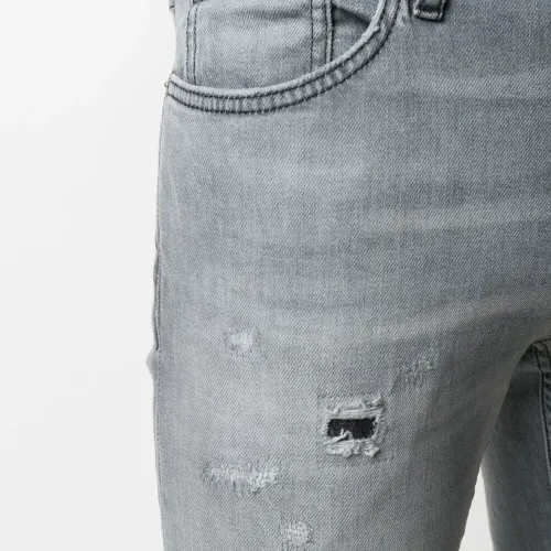 Эффект потертости, завышенная талия, петли для ремня, потайная пуговичная застежка спереди, классическая пятикарманная модель, узкий крой и длина по щиколотку. Цвет: серый.