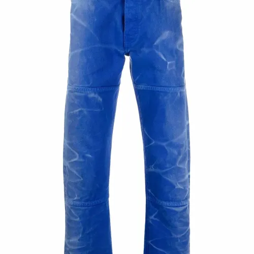 Прямой крой, обработанный деним, застежка на пуговицы, петли для ремня и пять карманов. Цвет: синий. Этот товар как минимум на 50% состоит из переработанных или повторно использованных материалов. Узнать больше о том, какие товары получают отметку «Ответственный выбор», можно из материала «Как мы оцениваем экологичность и этичность».
