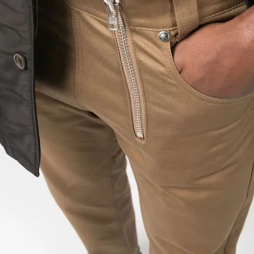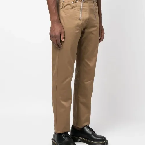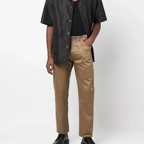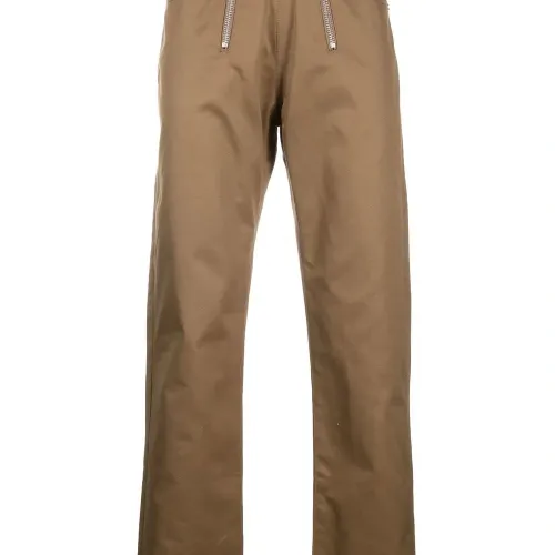Бежево-коричневый, хлопок, нашивка с логотипом сзади, детали с молниями, прямой крой, средняя посадка, потайная застежка на молнии и пуговицах, пять карманов и петли для ремня.