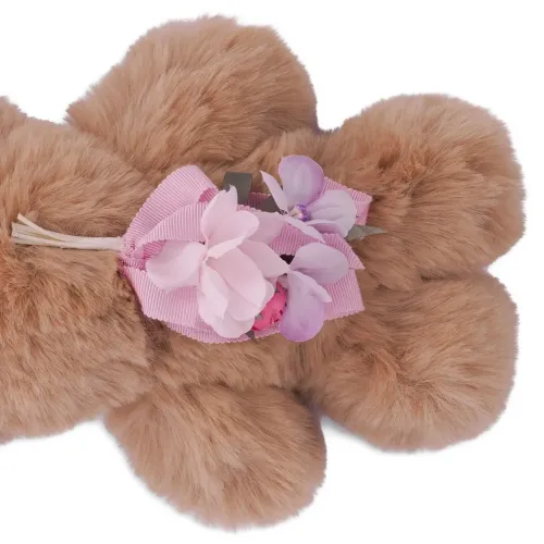 оленёнок, отделка из искусственного меха, цветочный декор, отделка лентой, металлическое кольцо