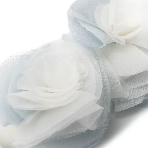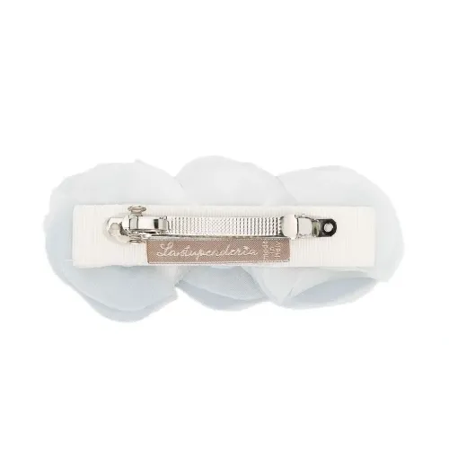 Синий/белый, объемная аппликация, цветочная аппликация и заколка-автомат.