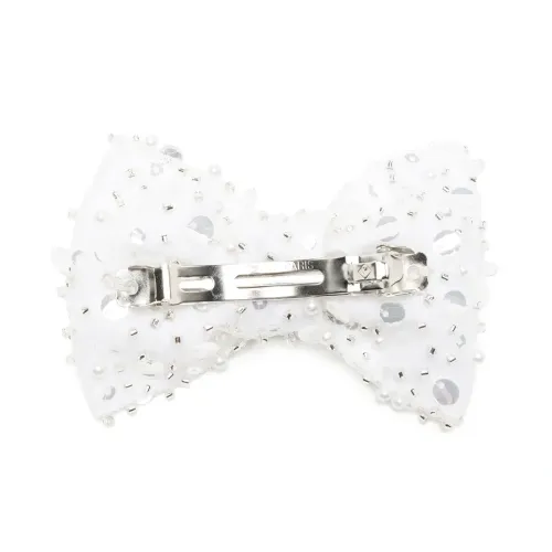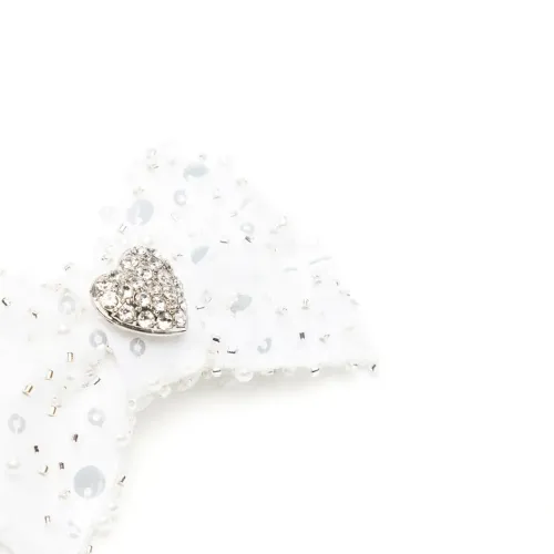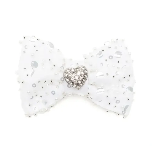 Белый, декор из кристаллов, подвеска в форме сердца, серебристая фурнитура, бант и застежка на зажиме.