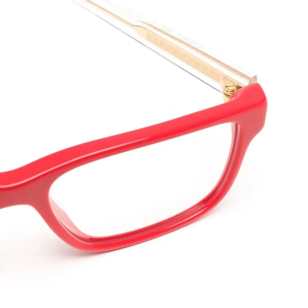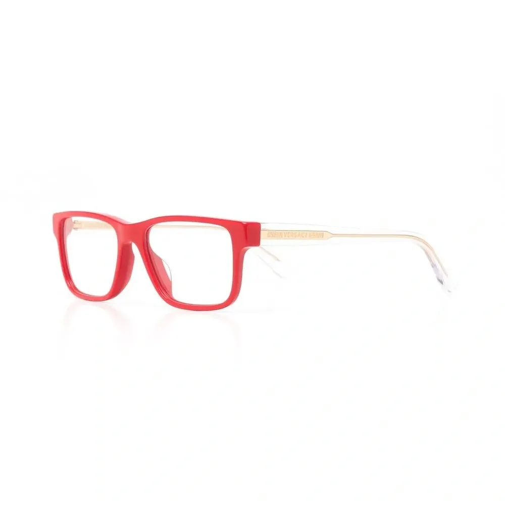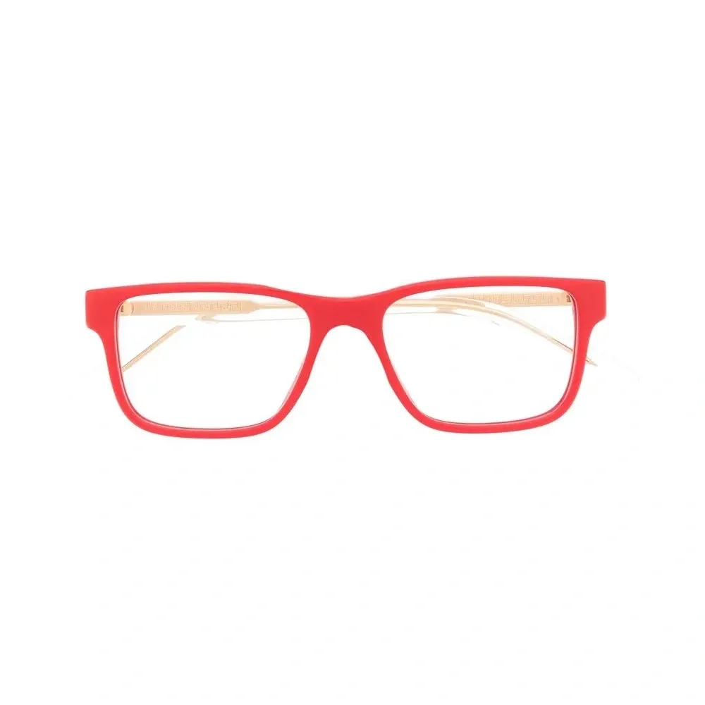 Ярко-красный, трапециевидная оправа, прозрачные линзы и прямые дужки. В комплект входит защитный чехол для очков. Обратите внимание, что на FARFETCH продаются оправы с линзами без диоптрий.