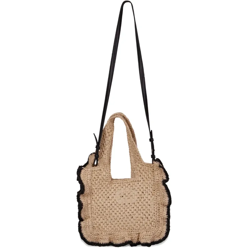 бежевые ручки-ремни с вышивкой и оборками
