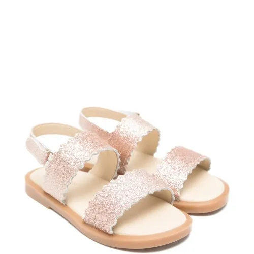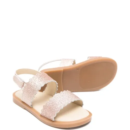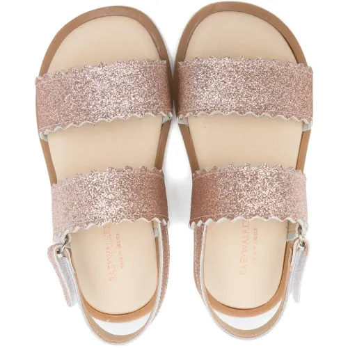 Блестящие кожаные босоножки с фигурным краем