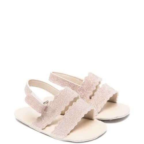 Блестящие сандалии с волнистыми ремешками