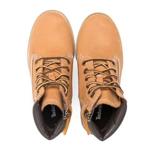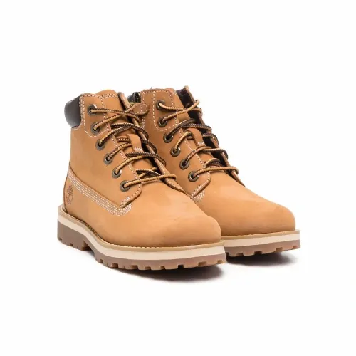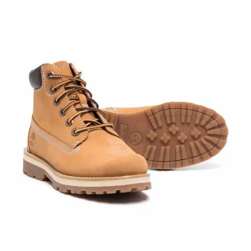 Длина по щиколотку, тисненый логотип сбоку, закругленный носок, шнуровка спереди, стелька с логотипом и плоская резиновая подошва. Цвет: коричневый.