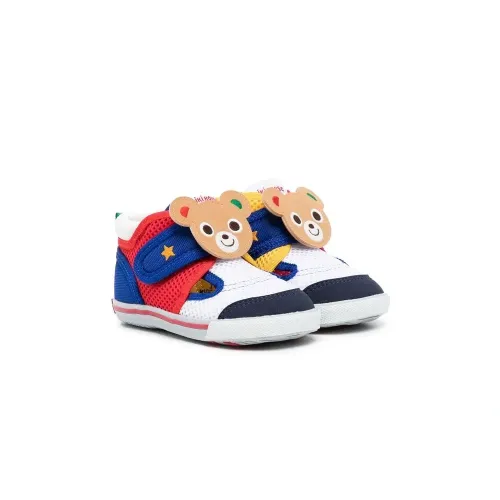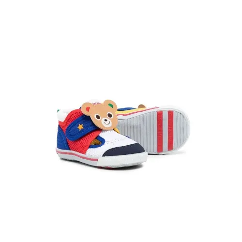 Разноцветный, сетчатые вставки, изображение медведя, закругленный носок, застежка на липучке спереди, стелька с логотипом и рифленая резиновая подошва.