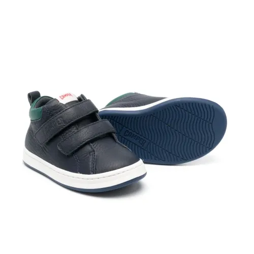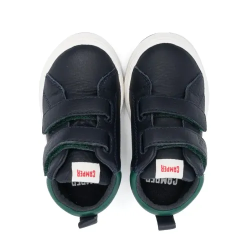 Темно-синий, кожа, переработанный полиэстер, гладкая текстура кожи, нашивка с логотипом на язычке, петля для подтягивания сзади, закругленный носок, застежка на липучке спереди и плоская резиновая подошва. Кожа в составе этого товара сделана на фабрике, сертифицированной организациями Leather Working Group (LWG) или ICEC. Это гарантирует, что производитель минимизировал негативное влияние материала на окружающую среду. Узнать больше о том, какие товары получают отметку «Ответственный выбор», можно из материала «Как мы оцениваем экологичность и этичность».