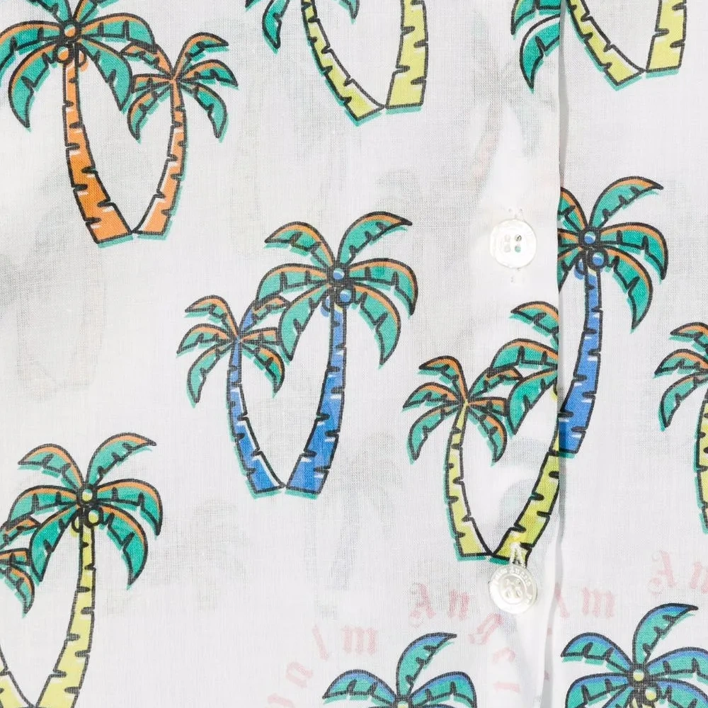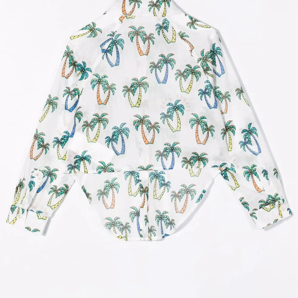 цвет: белый, разноцветный хлопок принт с изображением пальм классический воротник длинные рукава манжеты на пуговицах застежка на пуговицах спереди завязки спереди