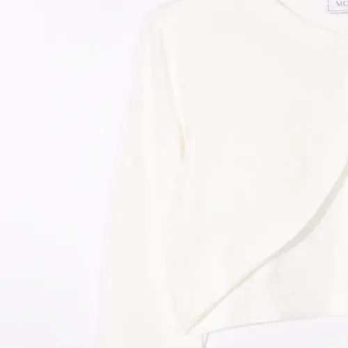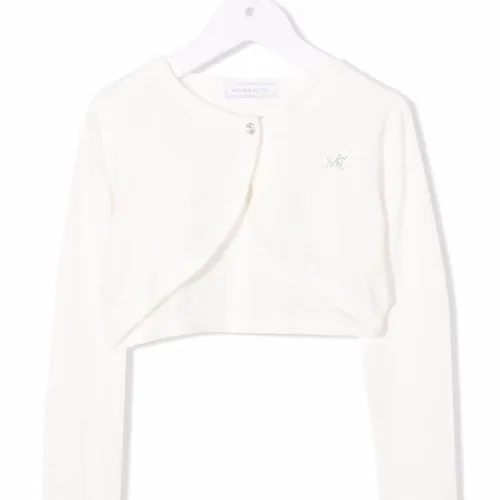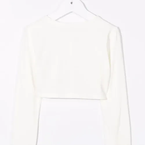 Укороченная длина, круглый вырез, застежка на пуговицы и длинные рукава. Цвет: белый.
