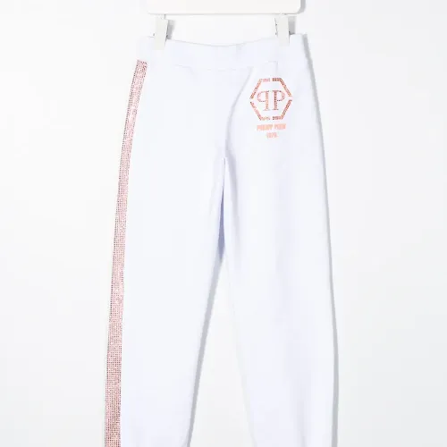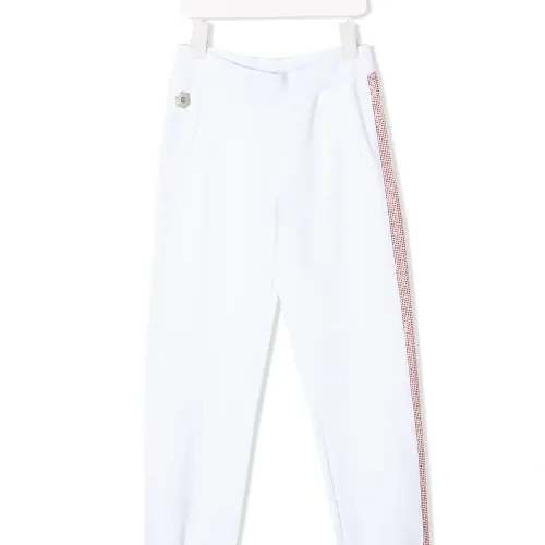 Спортивные брюки с лампасами от Philipp Plein Junior. Полоски сбоку, логотип сзади, эластичный пояс, боковые карманы и узкие манжеты. Цвет: белый.