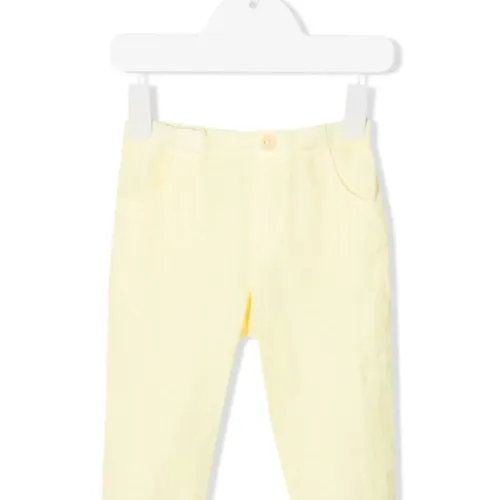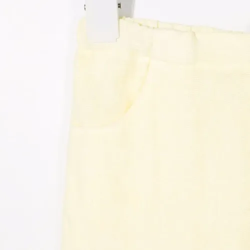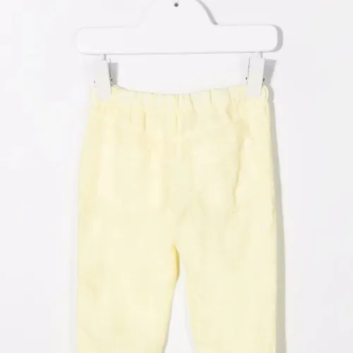 Прорезные карманы по бокам, два накладных кармана сзади, прямой крой и эластичный пояс.