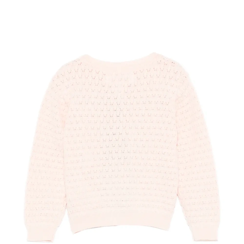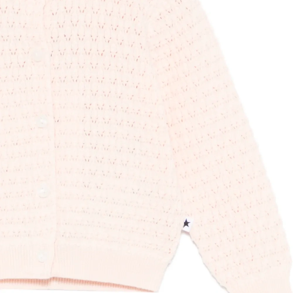 персиково-розовый открытая вязка застежка на пуговицы спереди длинные рукава ребристый низ ребристые манжеты