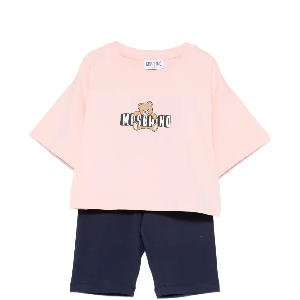 розовая и темно-синяя футболка с круглым вырезом, короткими рукавами и графическим принтом