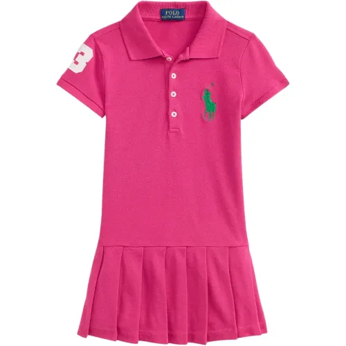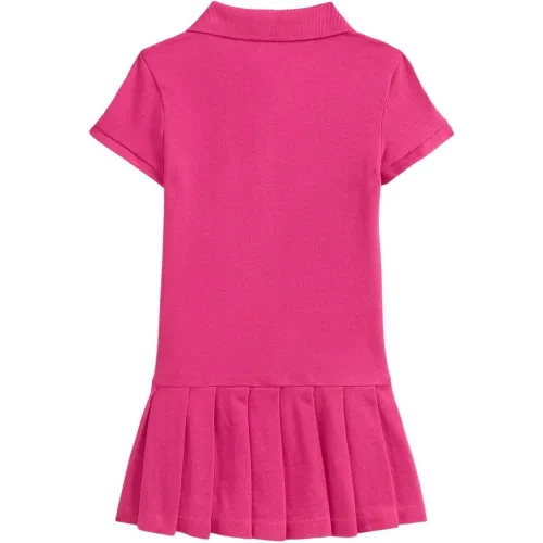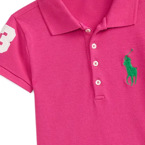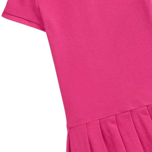 розовая плиссированная юбка с вышитым логотипом, застёжкой на пуговицы, короткими рукавами и воротником-поло