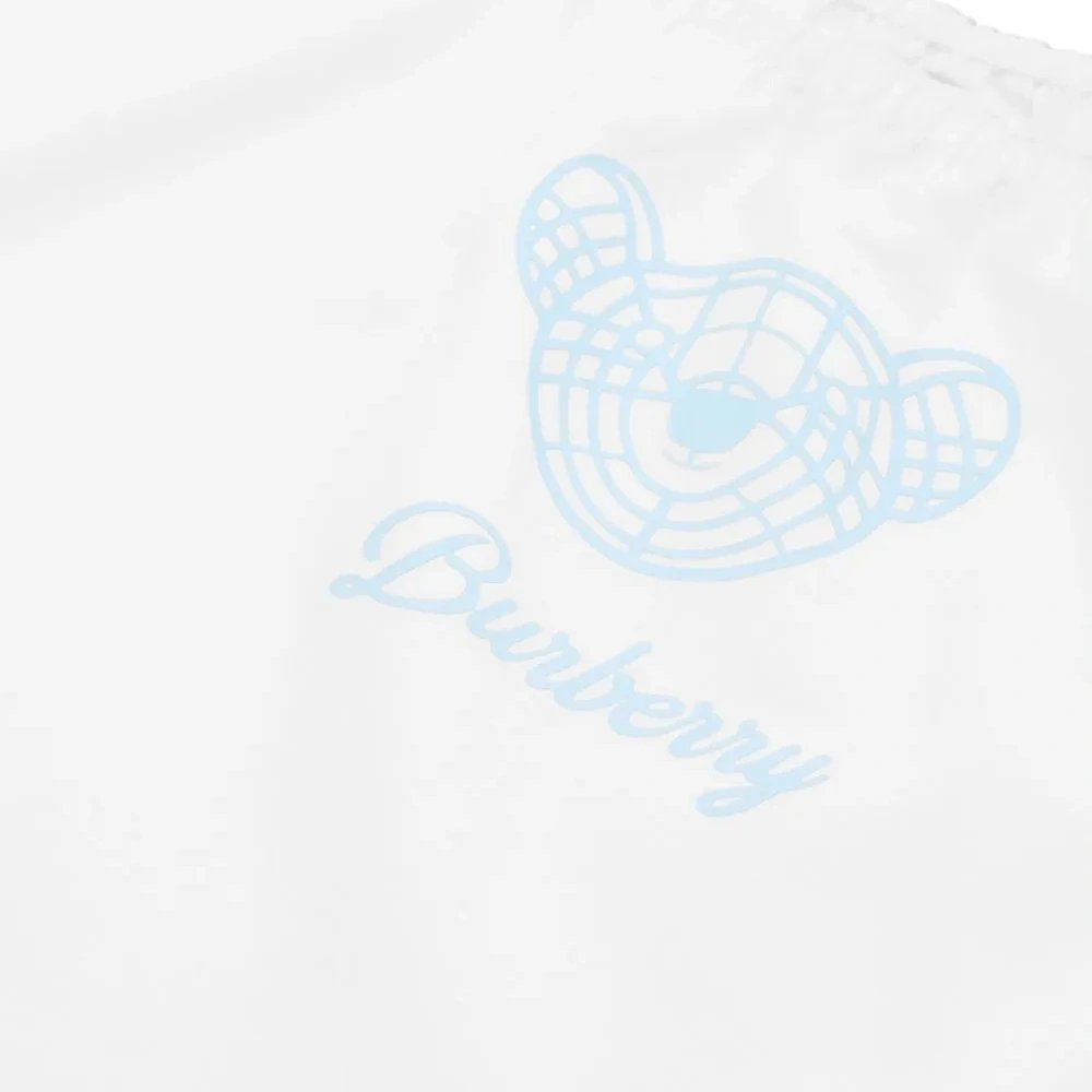 Белый, смесь хлопка и шелка, принт с изображением плюшевого медведя, круглый вырез, короткие рукава и прямой подол.