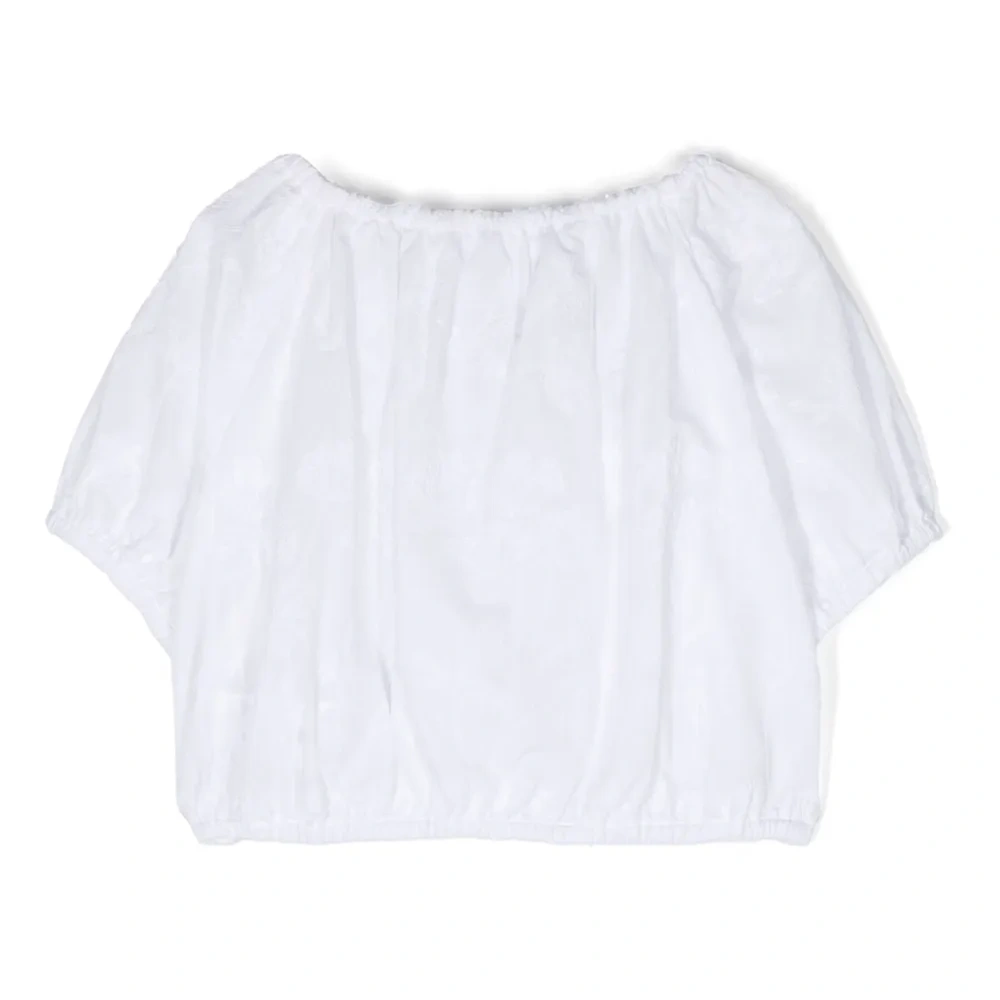 Расцветка Cloud White, хлопок, вышитые узоры, вырез-лодочка, короткие рукава, эластичные манжеты и эластичный подол.