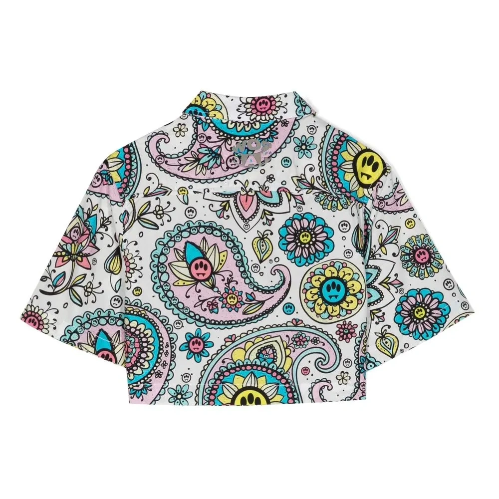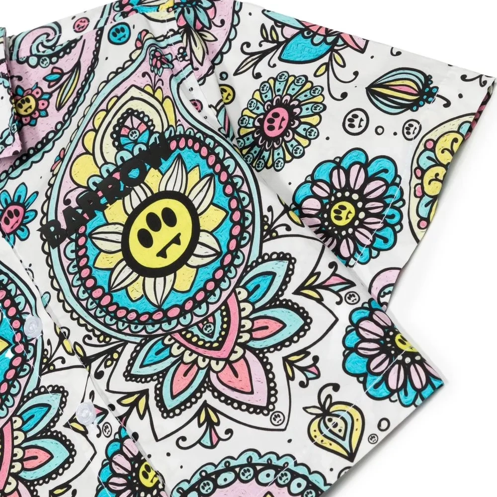 Белый/разноцветный, хлопок, принт с логотипом на груди, сплошной цветочный принт, застежка на пуговицы, короткие рукава и прямой подол.