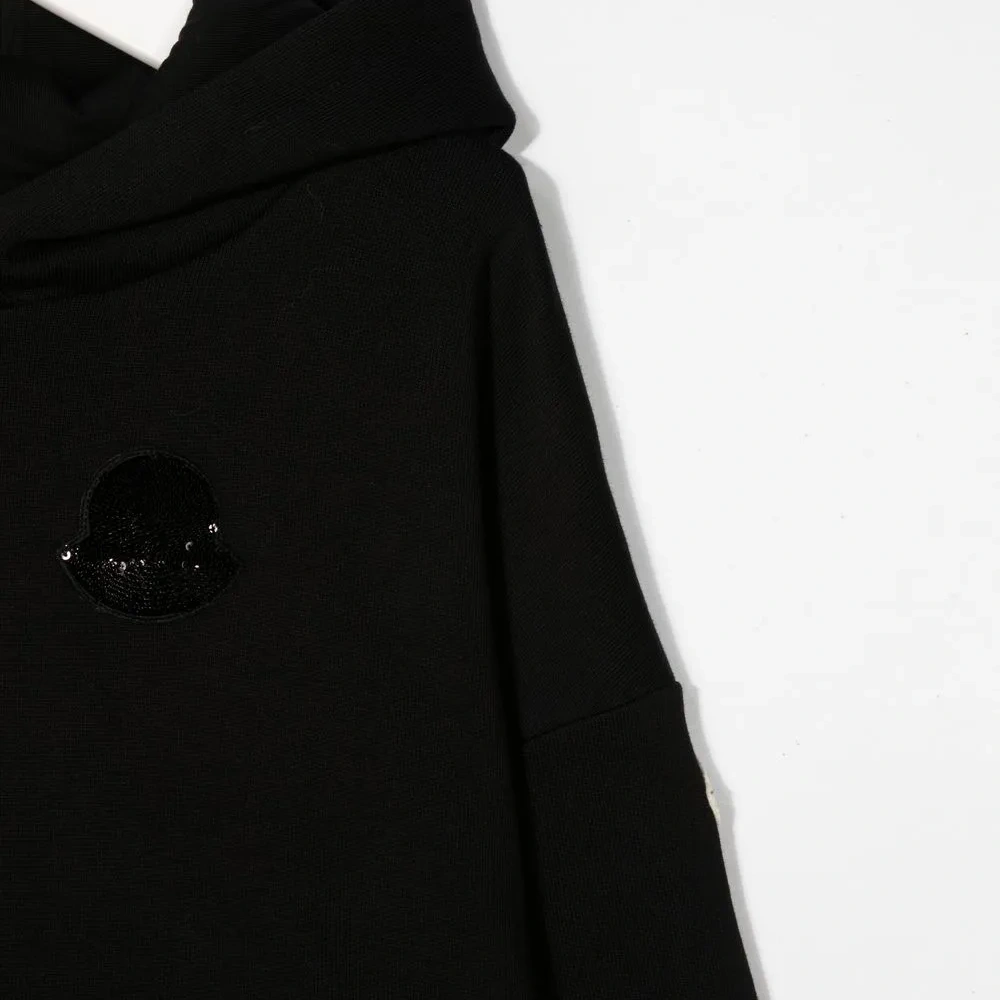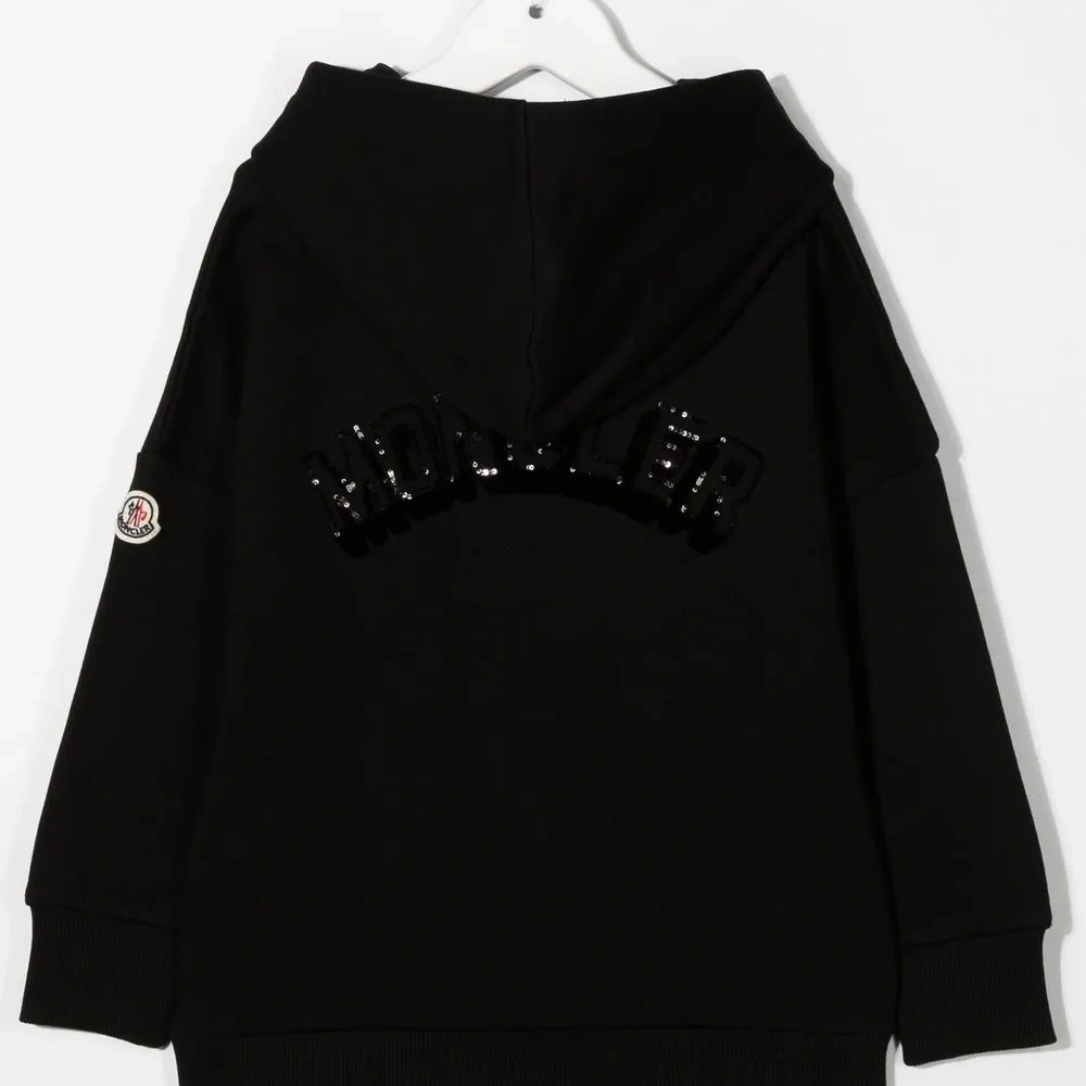 Черный, хлопок, флисовый материал, логотип, украшение из пайеток, классический капюшон, длинные рукава и прямой подол.