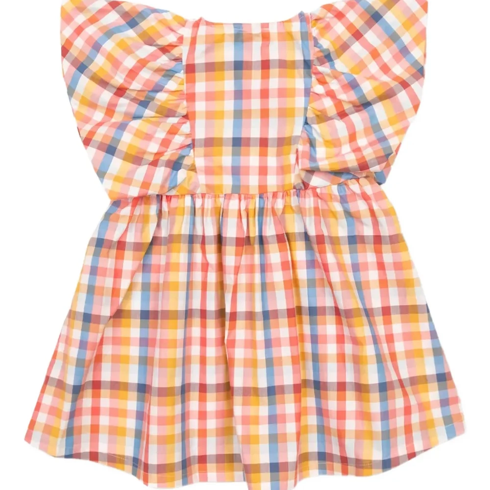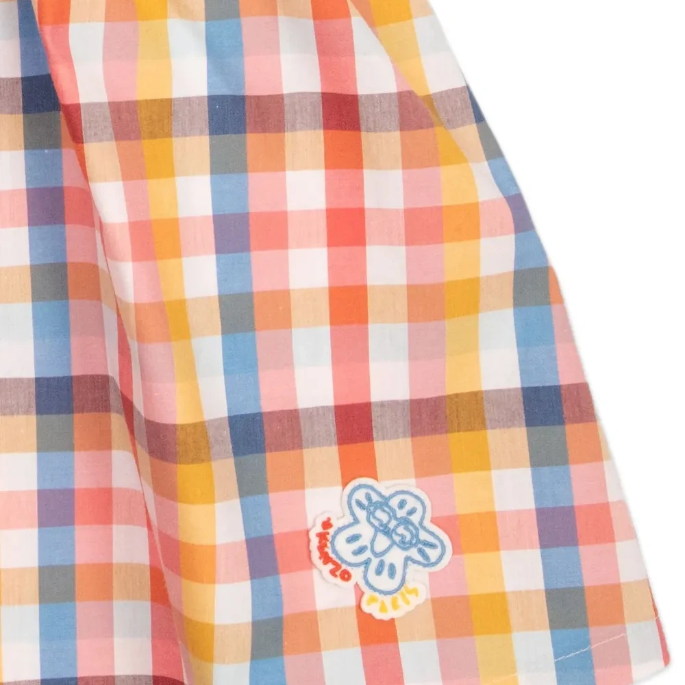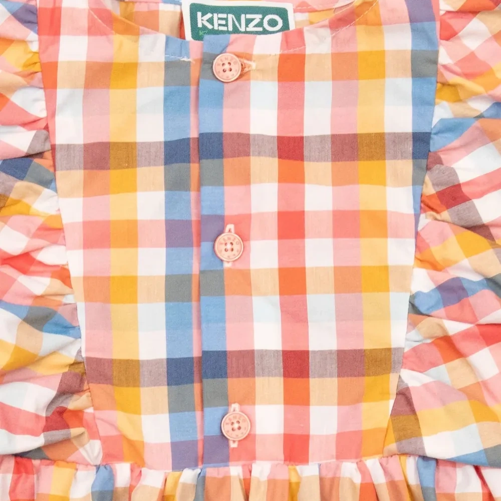 жёлтый хлопок клетчатый узор оборчатые рукава застёжка на пуговицы спереди