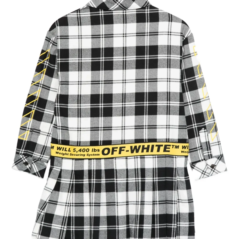 черно-белый клетчатый узор плиссированная юбка застежка на пуговицы спереди длинные рукава желтая полоса
