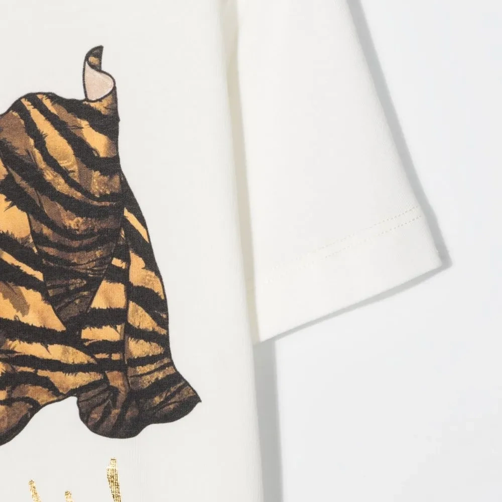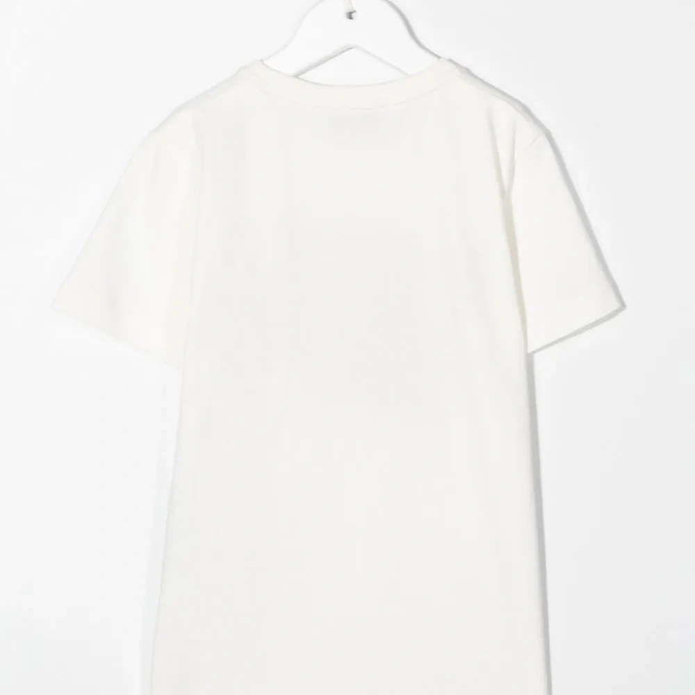 Белый, разноцветный, хлопок, принт на груди, круглый вырез, короткие рукава и прямой подол.