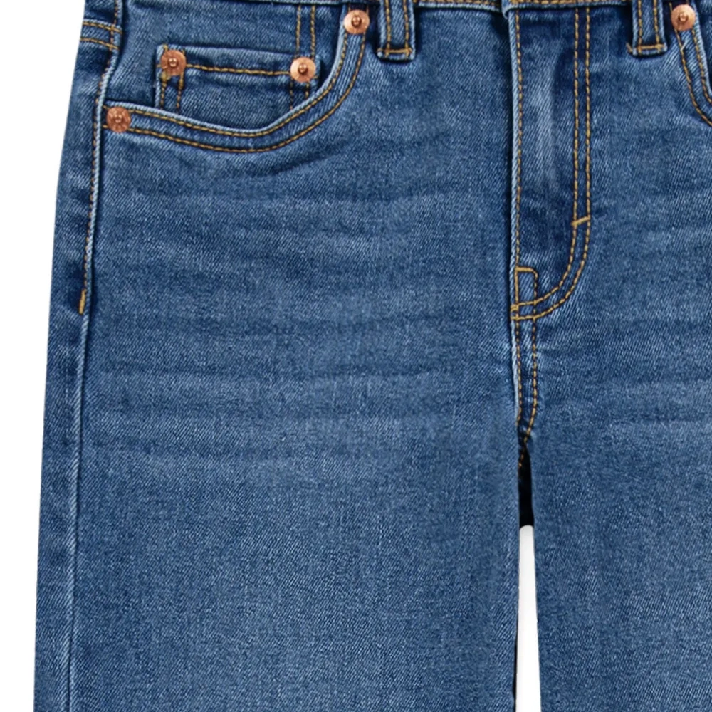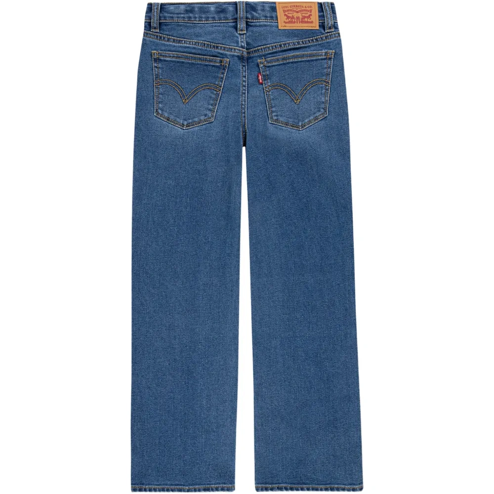 синие джинсы с контрастной отделкой швов, шлевками для пояса, задней нашивкой, задними карманами и прямыми штанинами