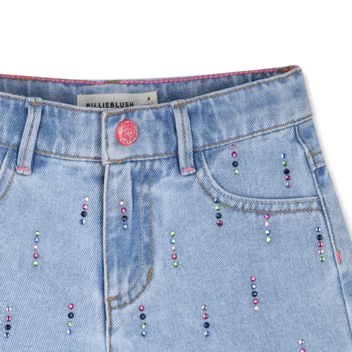 Джинсовые шорты, украшенные кристаллами