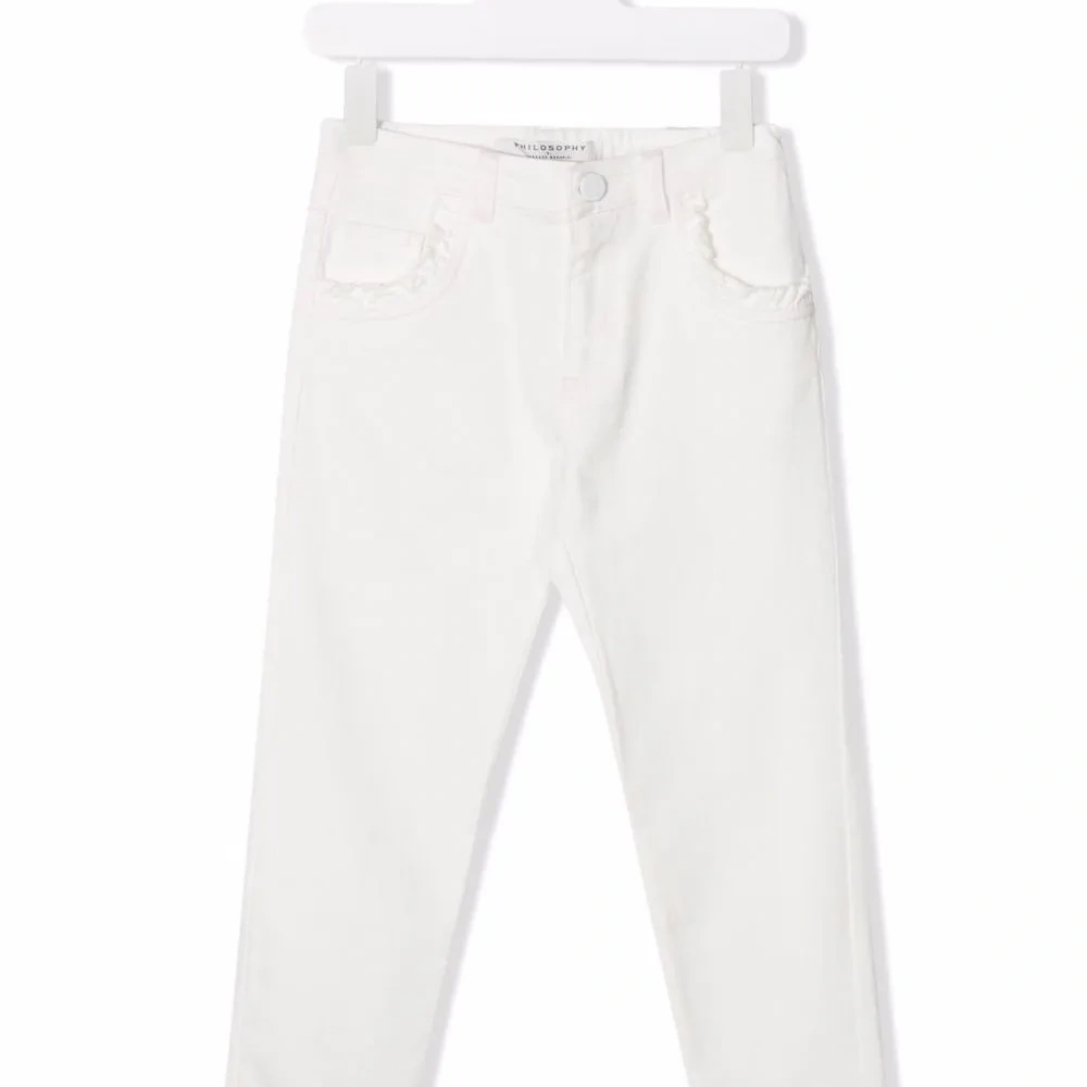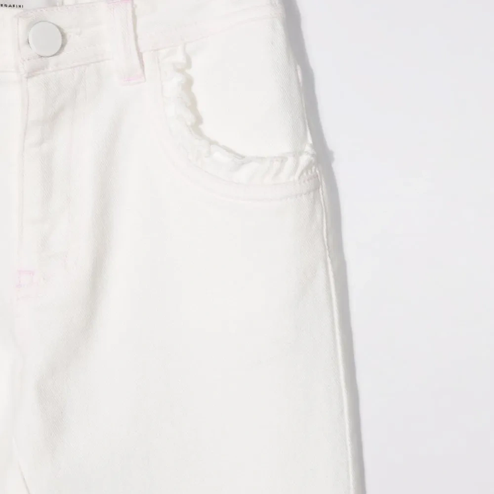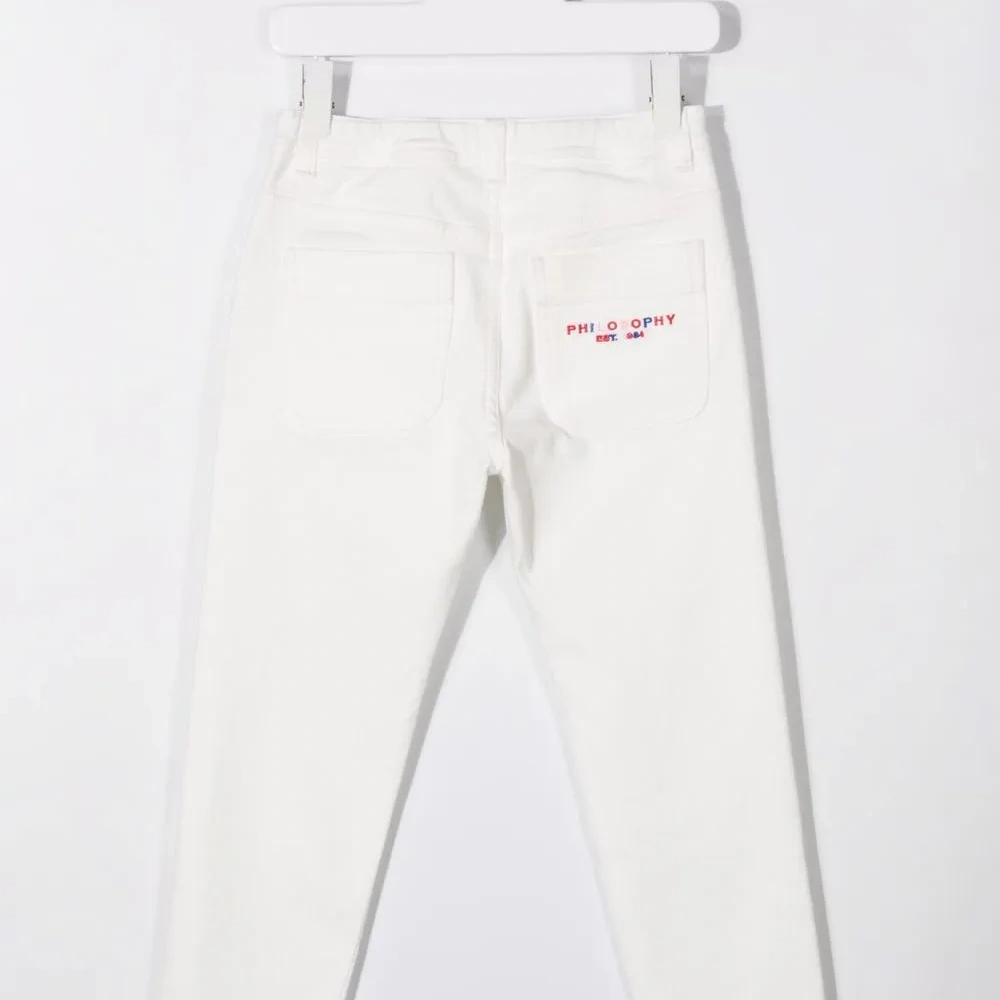 Облегающий крой, необработанные детали, застежка на молнии и пуговице спереди, классическая пятикарманная модель, петли для ремня и вышитый логотип сзади. Цвет: белый.