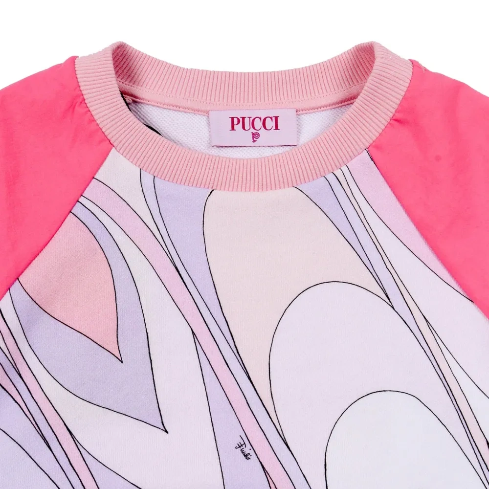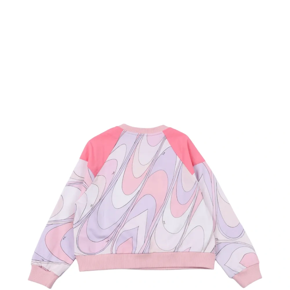 светло-розовый/фиолетовый принт "вихрь", круглый вырез, длинные рукава, ребристая отделка
