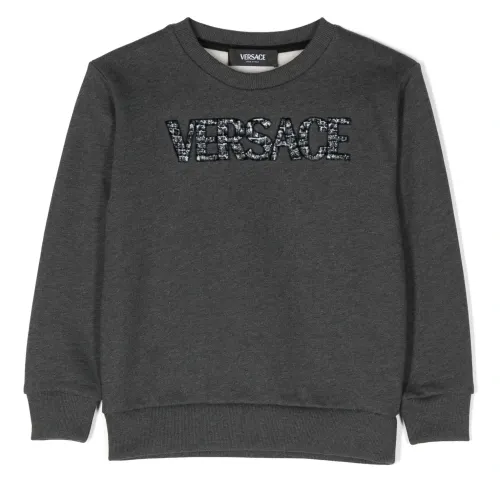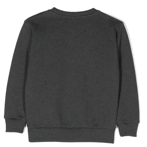 Серый, смесовый хлопок, логотип-аппликация, круглый вырез, длинные рукава, прямой подол и отделка в рубчик.