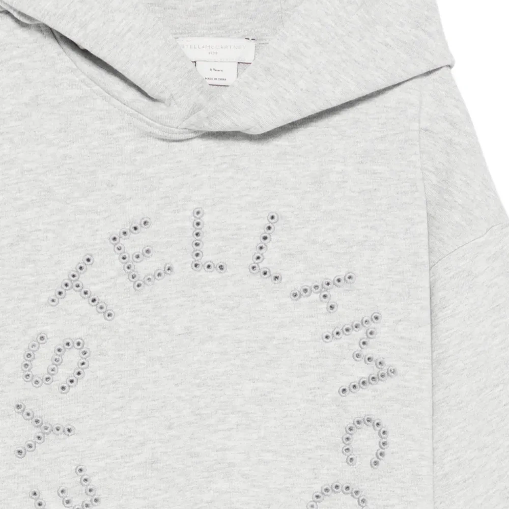 серый хлопковый худи с украшениями, длинные рукава, прилегающие манжеты, прилегающий нижний край