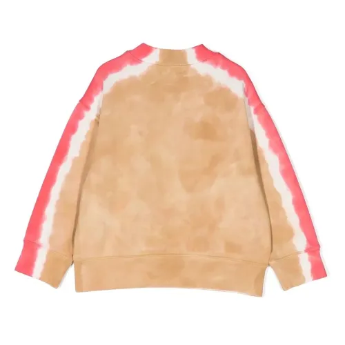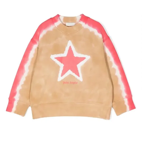 Коричневый, кораллово-розовый, органический хлопок, принт с изображением звезд, логотип спереди, принт тай-дай, круглый вырез, длинные рукава и прямой подол. Ответственный выбор: