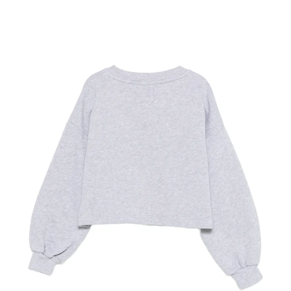 светло-серый укороченный топ с цветочным принтом, круглым вырезом, длинными рукавами и рубчатыми манжетами