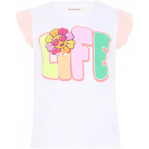 Футболка с оборчатыми рукавами и графическим принтом