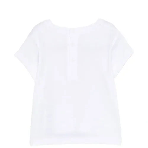 белый и разноцветный, с графическим принтом, круглый вырез, застежка на пуговицы сзади