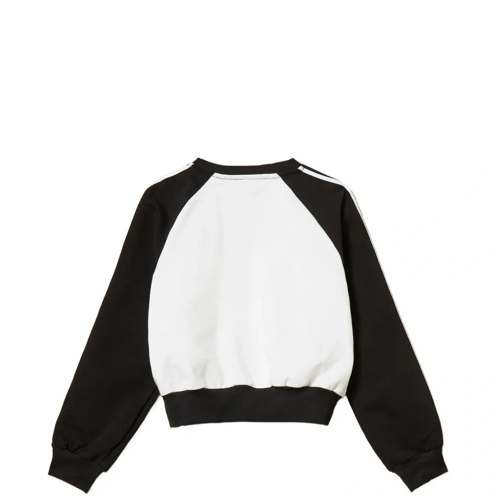 белые и черные полосатые рукава, колорблок-дизайн, круглый вырез, ребристый низ, ребристые манжеты