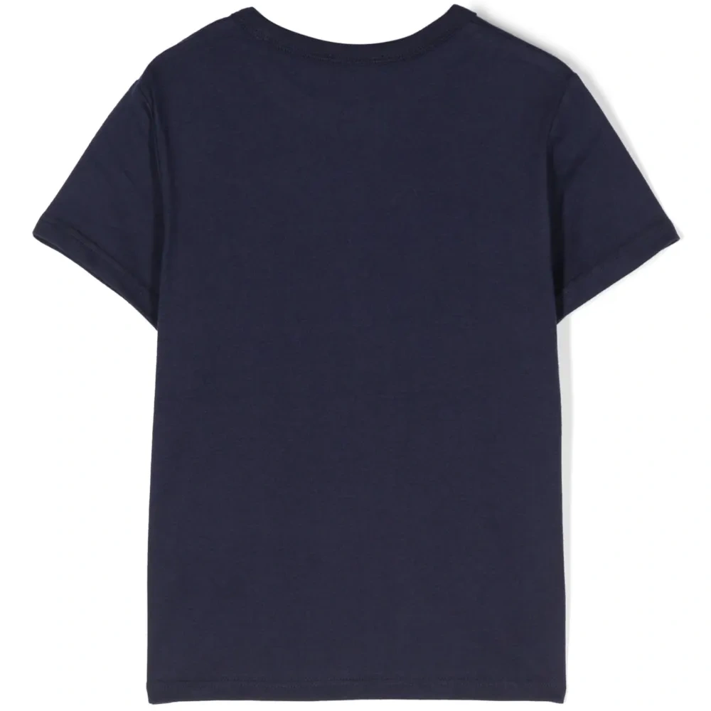 Темно-синий, малиновый, хлопок, логотип спереди, круглый вырез, короткие рукава и прямой подол.